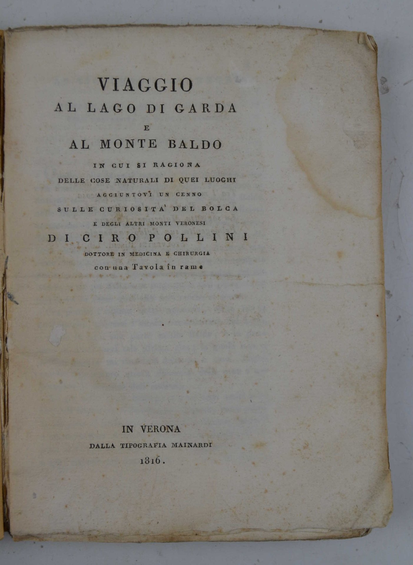 Viaggio al Lago di Garda e al Monte Baldo in cui si ragiona delle cose naturali di quei luoghi. Aggiuntovi un cenno sulle curiosità del Bolca e degli altri Monti Veronesi... | Libri antichi e moderni | POLLINI CIRO.