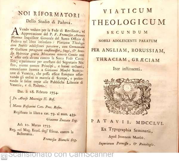 Viaticum theologicum nobili adolescenti paratum, cum Germaniam, et Galliam peragrare constituisset, frugi e honesto hebraicae gentis mercatore itineris comite. Viaticum theologicum secundum nobili adolescenti paratum per Angliam, Borussiam, Thraciam, Graeciam iter instituenti. | Libri antichi e moderni | Anonimo.
