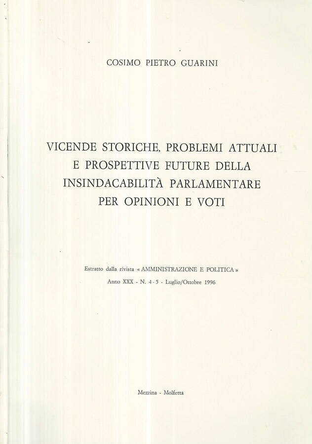 Vicende storiche, problemi attuali e prospettive future della insindacabilità parlamentare per opinioni e voti | Libri antichi e moderni | Cosimo Pietro Guarini