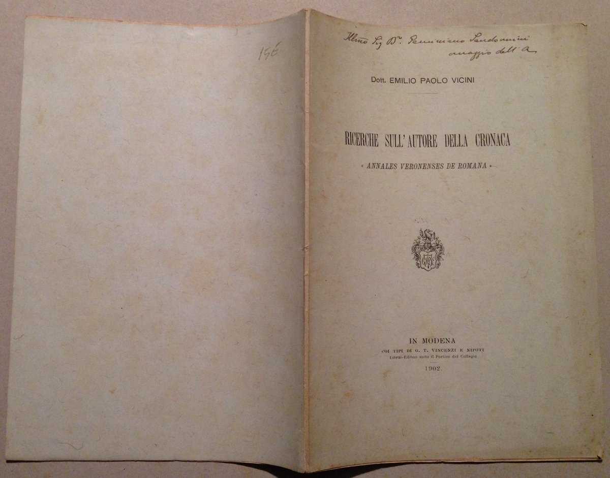 Vicini Ricerche sull'Autore Cronaca Annales Veronenses De Romana Modena 1902 | Libri antichi e moderni |