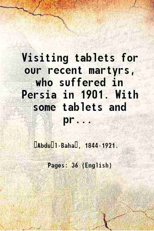 Visiting tablets for our recent martyrs, who suffered in Persia in 1901. With some tablets and prayers for the American Behais. Translated by Ali Kuli Khan. 1902