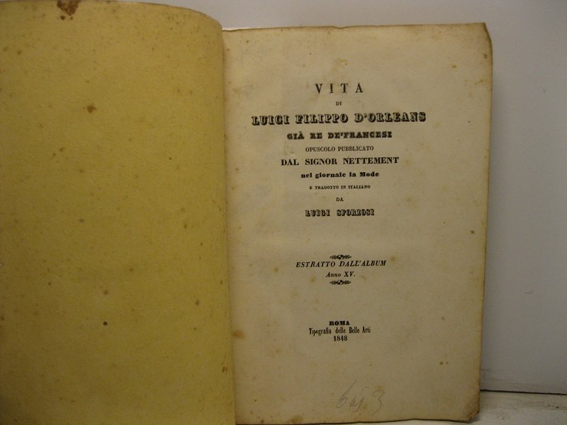 Vita di Luigi Filippo d'Orleans gia' Re de' Francesi. Opuscolo pubblicato nel giornale la Mode e tradotto in italiano da Luigi Sforzosi. Estratto dall'Album (anno XV)
