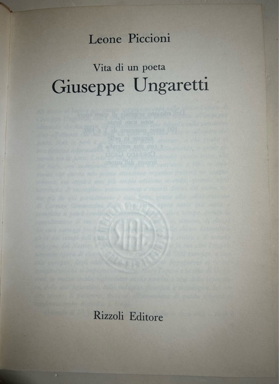 Vita di un poeta Giuseppe Ungaretti | Libri antichi e moderni | Piccioni, Leone