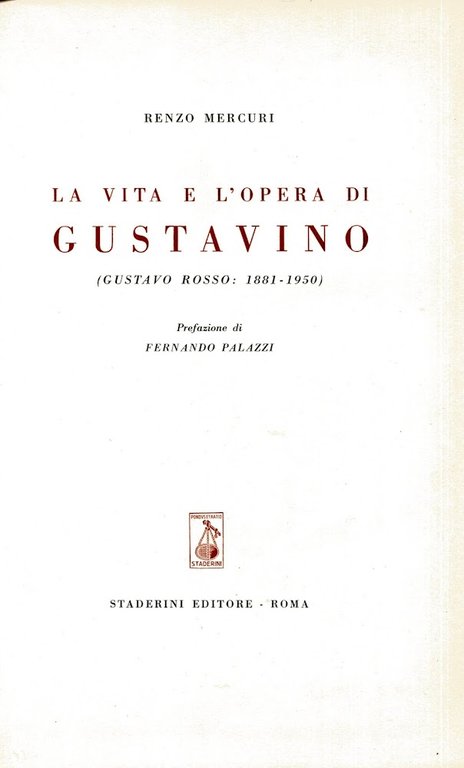 Vita e l'opera di Gustavino. Gustavo Rosso 1881-1950. Prefazione di Fernando Palazzi