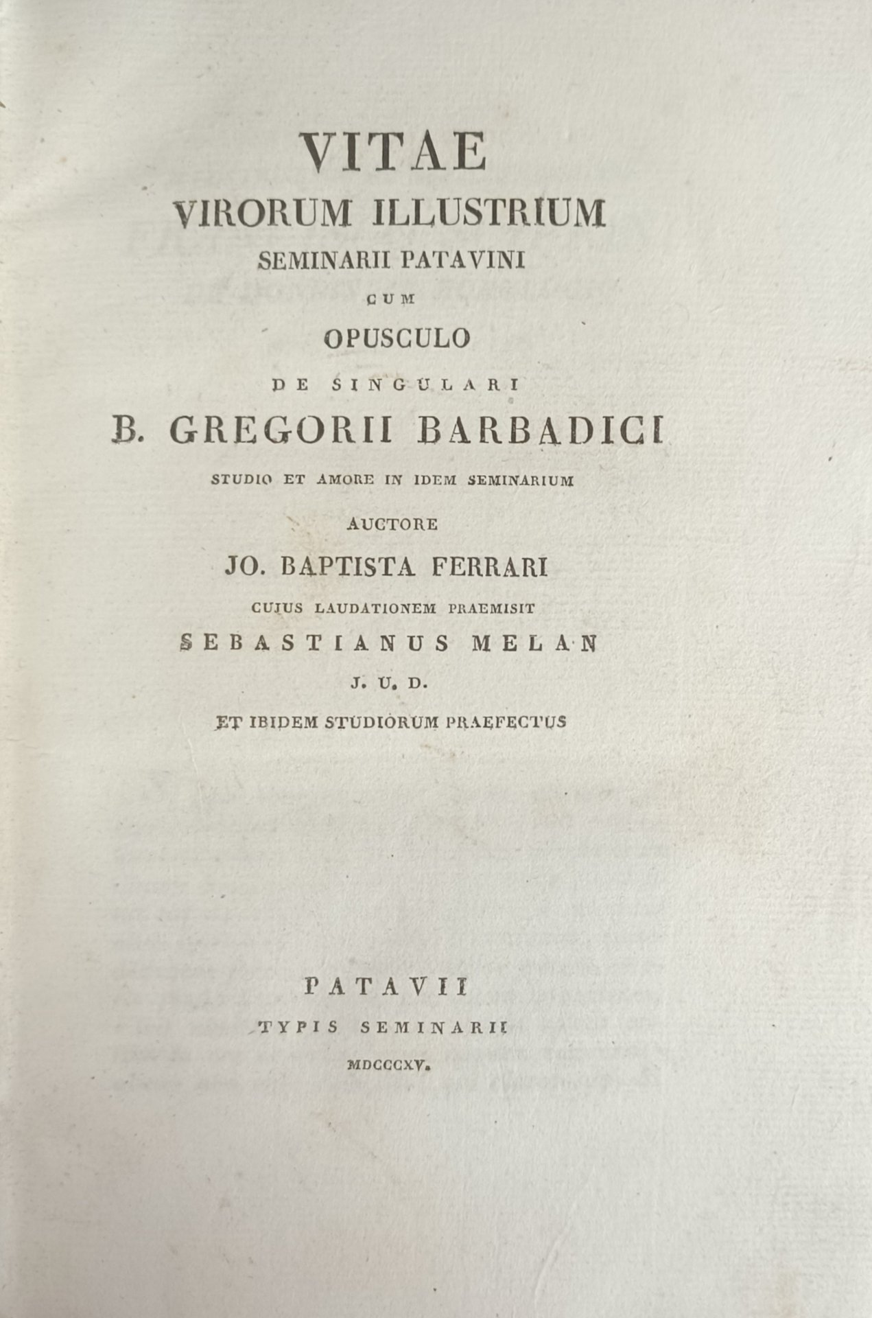 VITAE VIRORUM ILLUSTRIUM CUM OPUSCOLO DE SINGULARI B. GREGORII BARBADICI STUDIO ET AMORE IN IDEM SEMINARIUM