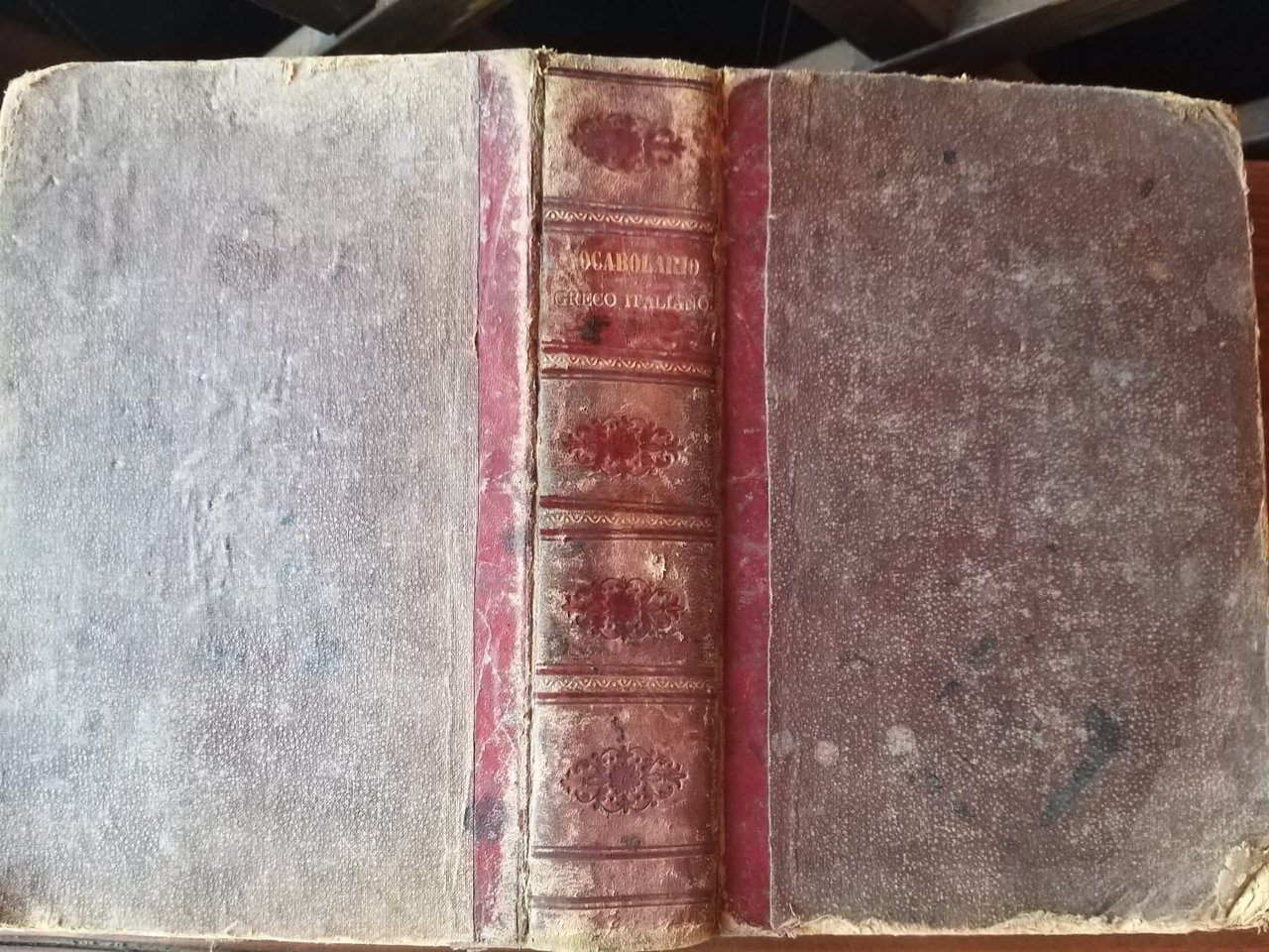 Copertina uso tela con banda e titolo dorato al dorso, sporca ingiallita e usurata. Tagli sporchi di polvere e ingialliti, pagine ingiallite con gore. cucitura allentata.
