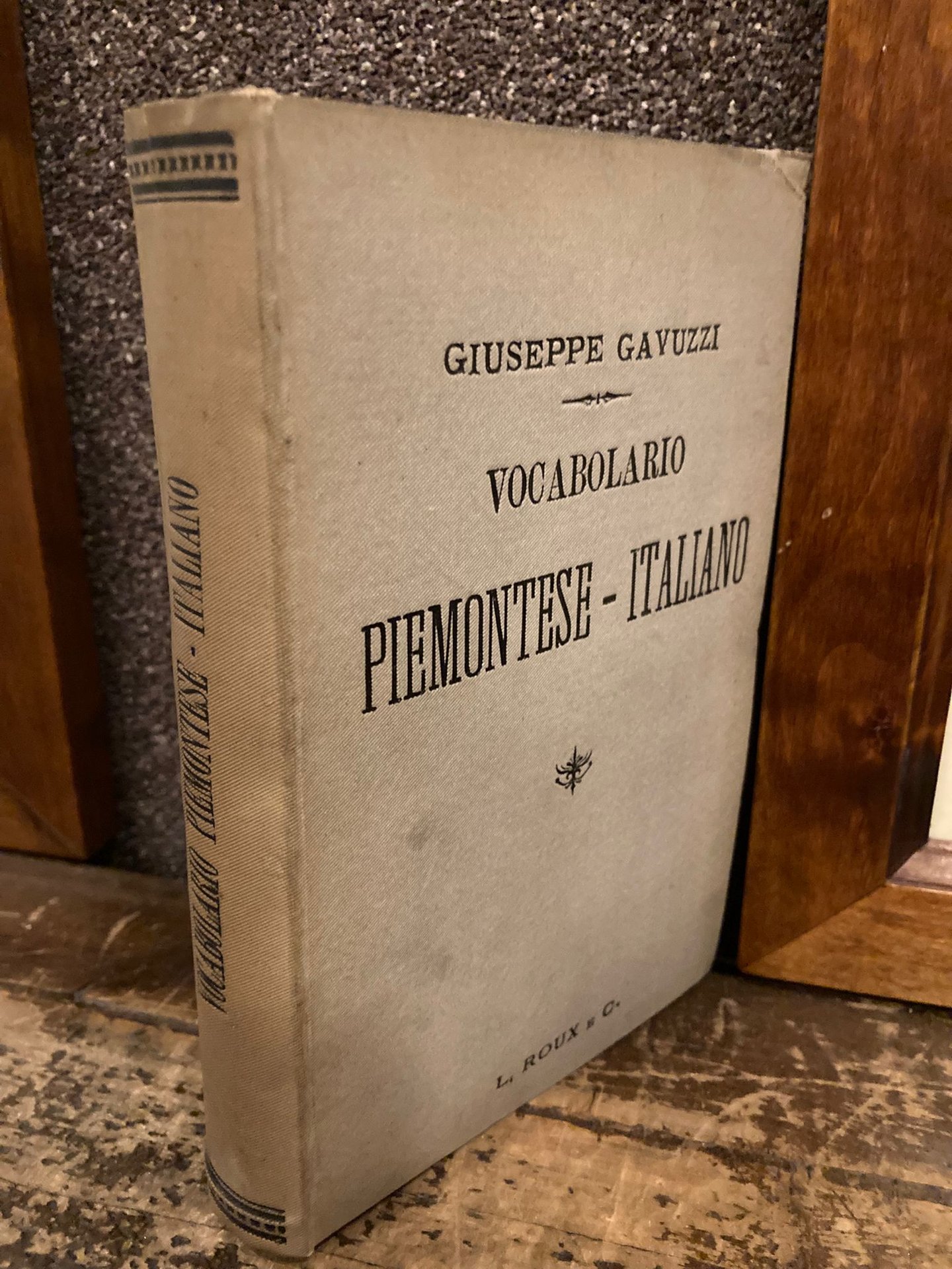 In-16° (18.5x12 cm), pp. XII, 692, legatura editoriale tutta tela grigia con titoli in nero. Pagine lievemente brunite ai margini. Bell'esemplare. Prima edizione. Il vocabolario è preceduto da cenni grammaticali, fonetici, ortografici e da una compendiosa grammatica della lingua piemontese. L'autore, 'ingegnere giubilato degli Uffici tecnici di Finanza', era nativo di Caramagna. Cfr. Clivio, 3148.