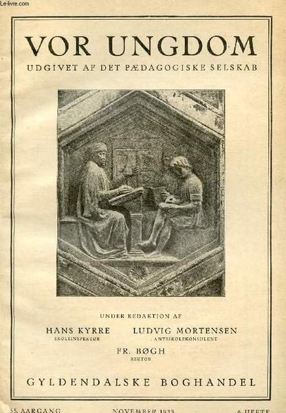 VOR UNGDOM, 55 AARGANG, 6 H�FTE, NOV. 1933, UDGIVET AF DET P�DAGOGISKE SELSKAB (INDHOLD: A. H�jberg Christensen: Forslagene til nye L�seplaner for Gymnasiet. Ivar Berendsen : Historieundervisningen i Gymnasiet. Janus Nielsen : L�rerstandens religi�se.)
