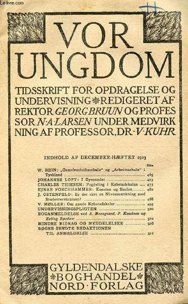 VOR UNGDOM, DEC. 1923, TIDSSKRIFT FOR OPDRAGELSE OG UNDERVISNING (INDHOLD: W. REIN: �Gemeinschaftsschule" og �Arbeitsschule" i Tyskland. JOHANNES LOFT: I Gymnasiet. CHARLES THIESEN: Fagdeling i K�bstadskolen.)