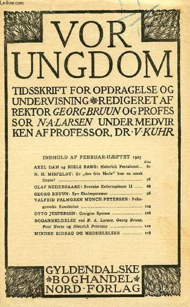 VOR UNGDOM, FEB. 1927, TIDSSKRIFT FOR OPDRAGELSE OG UNDERVISNING (INDHOLD: AXEL DAM og NIELS BANG: Heinrich Pestalozzi. H. H. MISFELDT: Er "den frie Skole" kun en smuk Dr�m? OLAF NEDERGAARD: Svenske Reformplaner II.) | Libri antichi e moderni | Collectif