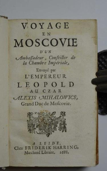 Cm. 14, pp. (2) 381 (1). Fregio al frontespizio. Legatura del tempo in cartonato con dorso ricoperto in carta dipinta. Esemplare genuino e ben conservato. Edizione originale della traduzione francese di questo viaggio effettuato tra il 1661 e il 1663, precedentemente conosciuto com il titolo di Iter in Moscoviam.