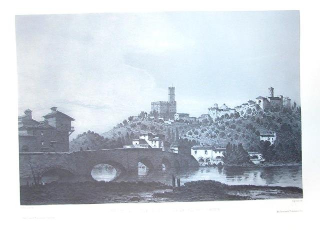 VUE GENERALE PRISE DES BORDS DE L'ARNO. POPPI (Province du Casentino). Riproduzione tratta dall'album "La Toscane" di André Durand. | Libri antichi e moderni |