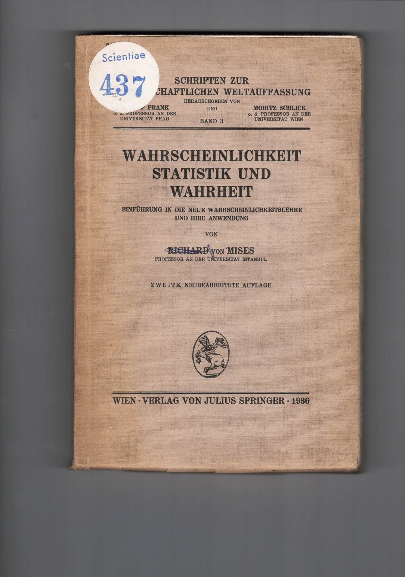 Wahrscheinlichkeit, Statistik und Wahrheit Einführung in die neue Wahrscheinlichkeitslehre und ihre Anwendung | Libri antichi e moderni | Mises Richard