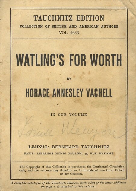 Leipzig, Bernhard Tauchnitz, 1925, 1927, in-16, br. edit., pp. 285, [1], 8. Collection of British Authors, vol. 4683. Qualche traccia d'uso esterna, senza mancanze.