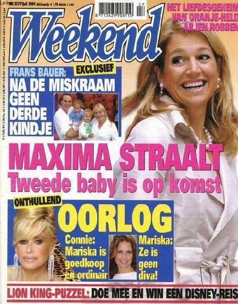 WEEKEND, Nr. 27, JULI 2004 (Inhoud: Maxima straalt, tweede baby is opp komst. Oorlog: Connie & Mariska. Frans Bauer: na de miskraam geen derde kindje.)