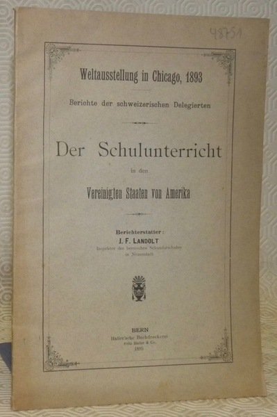 Weltausstellung in Chicago, 1893. Berichte der schweizerischen Delegierten. Der Schulunterricht in den Vereinigten Staaten von Amerika. | Libri antichi e moderni | Landolt, J.F.
