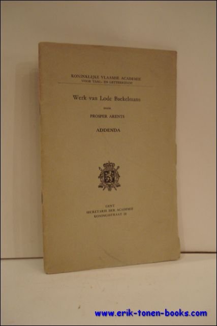 WERK VAN LODE BAEKELMANS, ADDENDA, | Libri antichi e moderni | Arents, Prosper