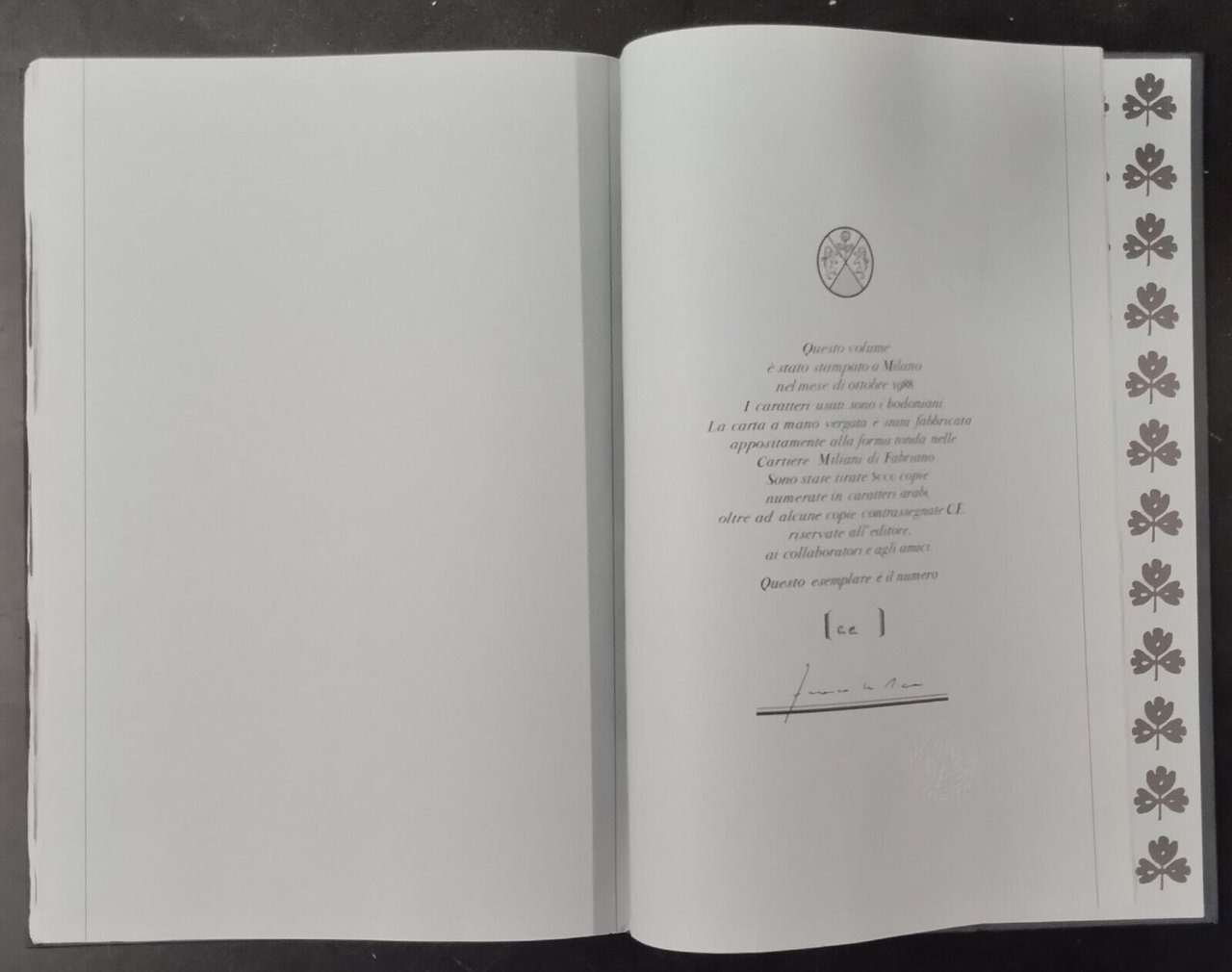 Esemplare tirato in 5000 copie + alcune c.e. riservate ai collaboratori e agli amici, il nostro è il numero C.E.