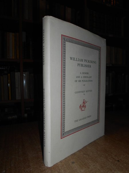 GEOFFREY KEYNES. London, The Galahad Press, 1969. WILLIAM PICKERING PUBLISHER a memoir and a Check-List of his publications. In-8°, tela con titolo in oro al dorso con sovracopertina. 125 pp. con 37 illustrazioni. In ottimo stato di conservazione. Uff. E - II - 1