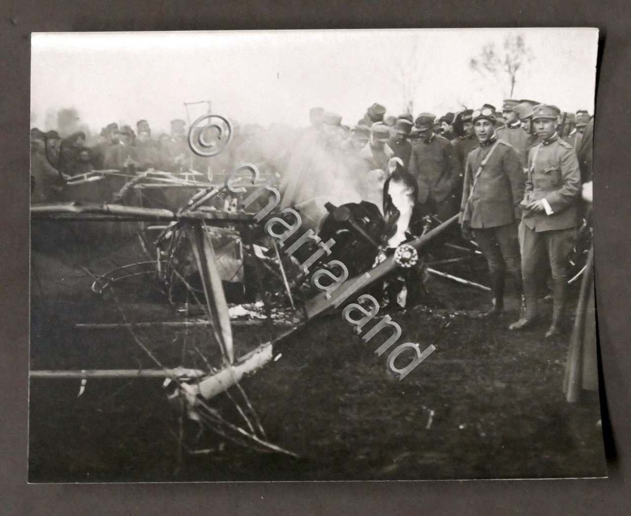 WWI - Fotografia aeroplano austriaco abbattutto da aviazione italiana - 1916 ca.