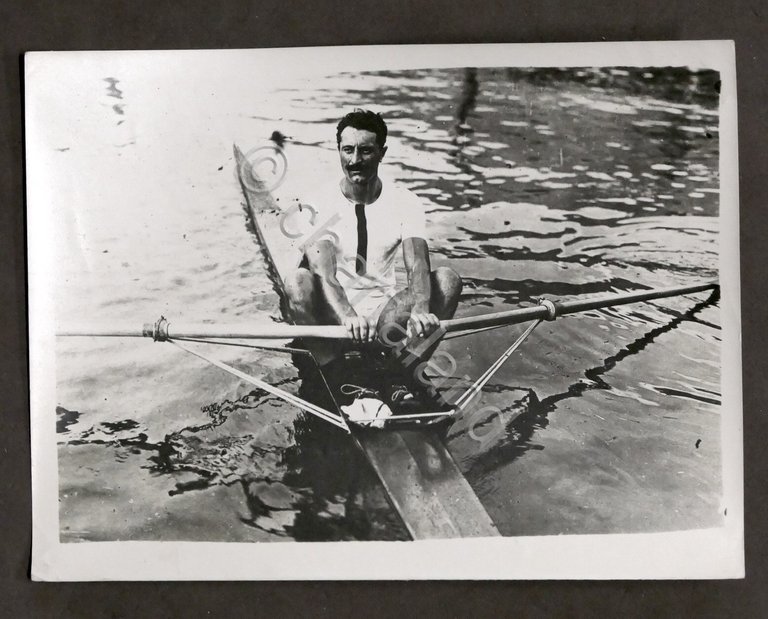 WWI - Fotografia canottiere italiano Giuseppe Sinigaglia morto durante la Prima Guerra Mondiale - 1916 ca. Al retro: timbro agenzia Argo Milano e didascalia.  Dimensioni: 12 x 16 cm ca. Condizioni molto buone.