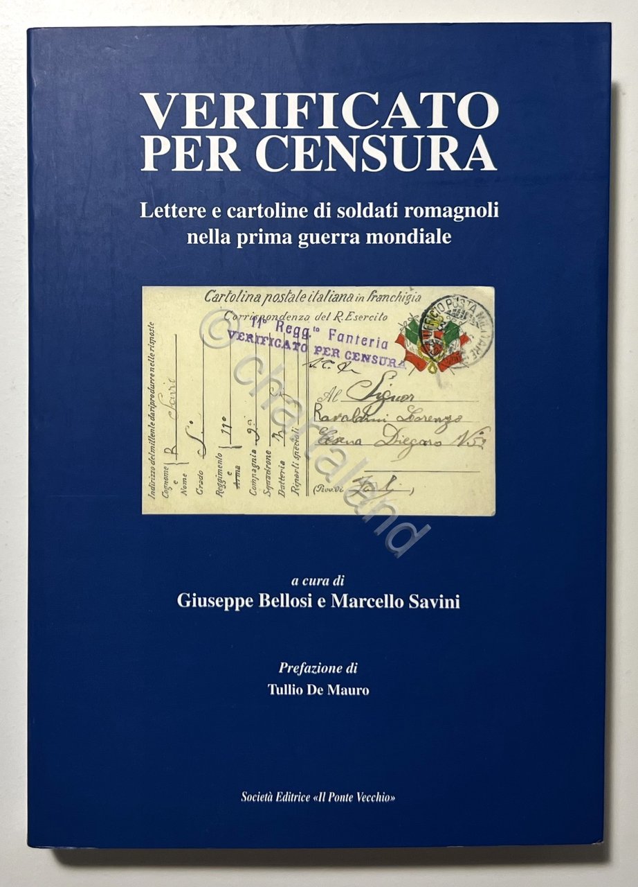 G. Bellosi e M. Savini - Verificato per Censura: Lettere e cartoline di soldati romagnoli nella prima guerra mondiale - ed. 2002 Testo in lingua italiana. Pagine 439 Copertina morbida. Condizioni molto buone.