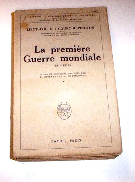 C. Court Repington - La premiere guerre mondiale 1914-1918 - 1^ ed. 1922 pp. 701 Vol. I Lingua francese Copertina morbida Condizioni molto buone