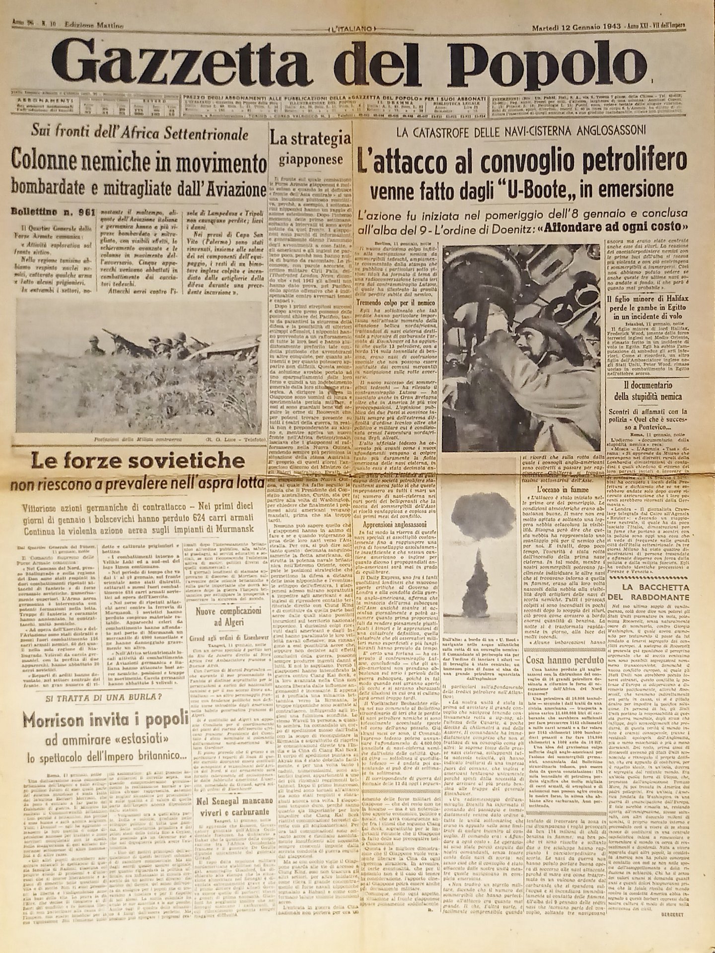 WWII - Gazzetta del Popolo N. 10 - 1943 La catastrofe delle navi-cisterna