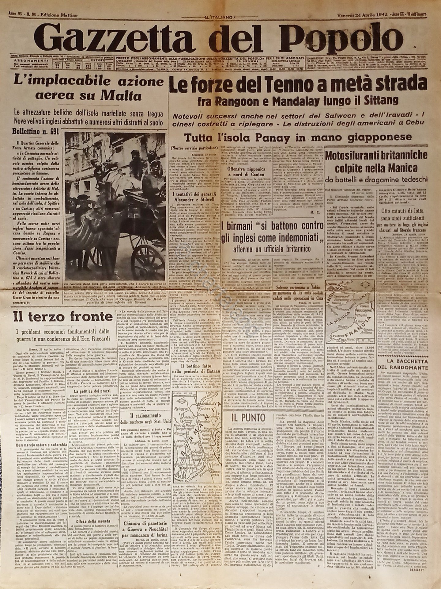 WWII - Gazzetta del Popolo N. 98 - 1942 L'implacabile azione aerea a su Malta