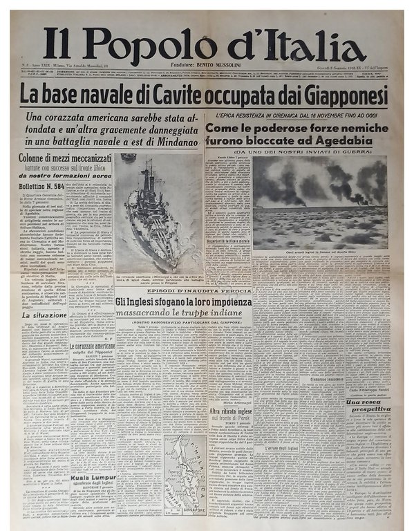 WWII - Il Popolo d'Italia N. 8 - 1942 La base navale di Cavite occuopata | Libri antichi e moderni |