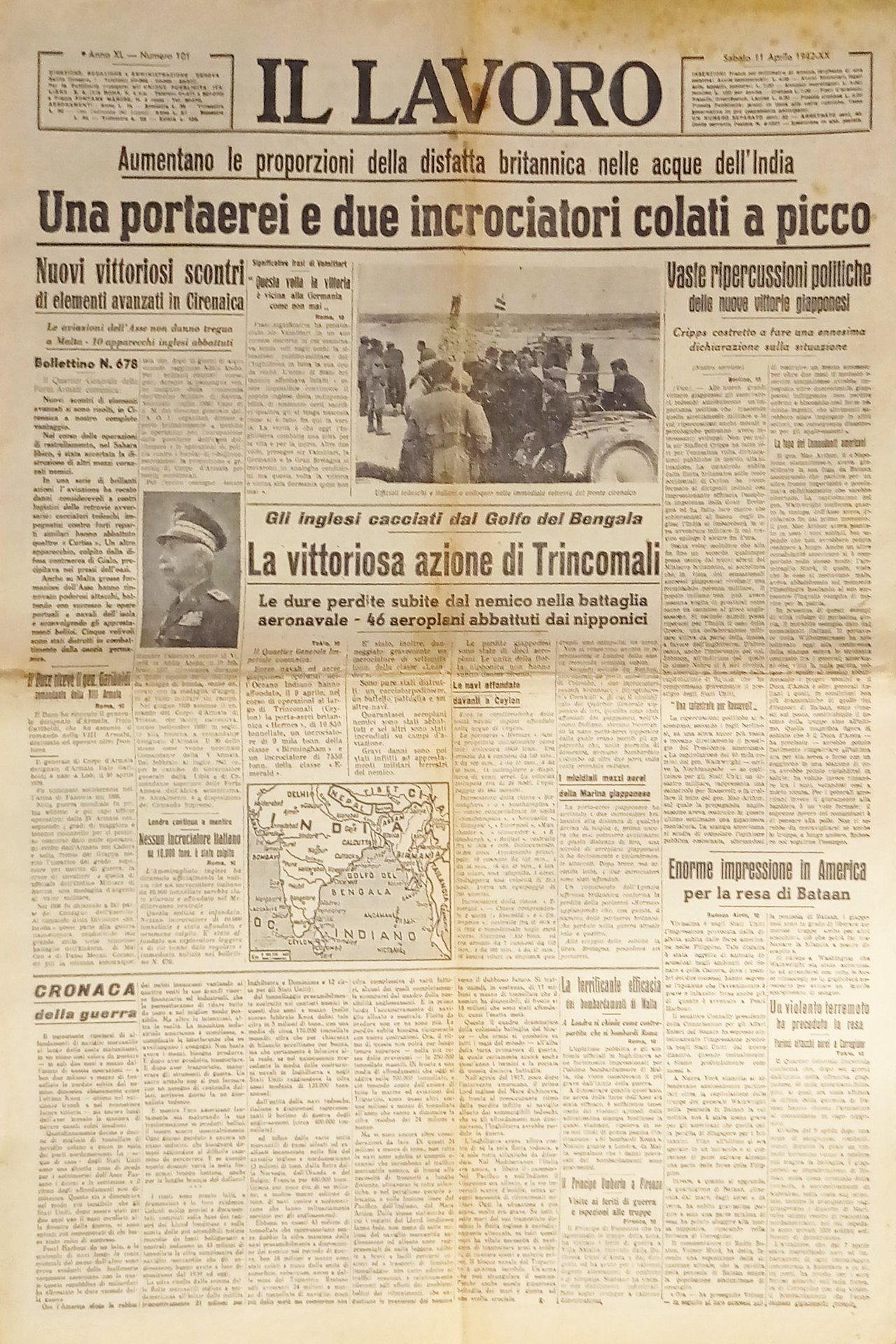WWII - Quotidiano - Il Lavoro N. 101 - 1942 La vittoriosa azione di Trincomali