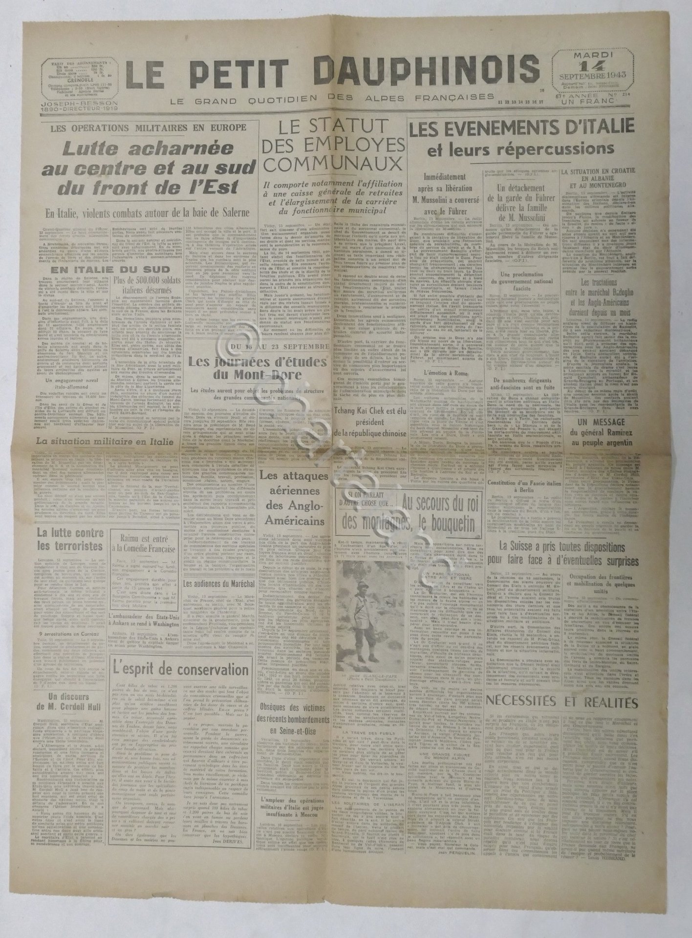 WWII Giornale - Le Petit Dauphinois N. 214 - 1943 Quotidien des Alpes Francaises
