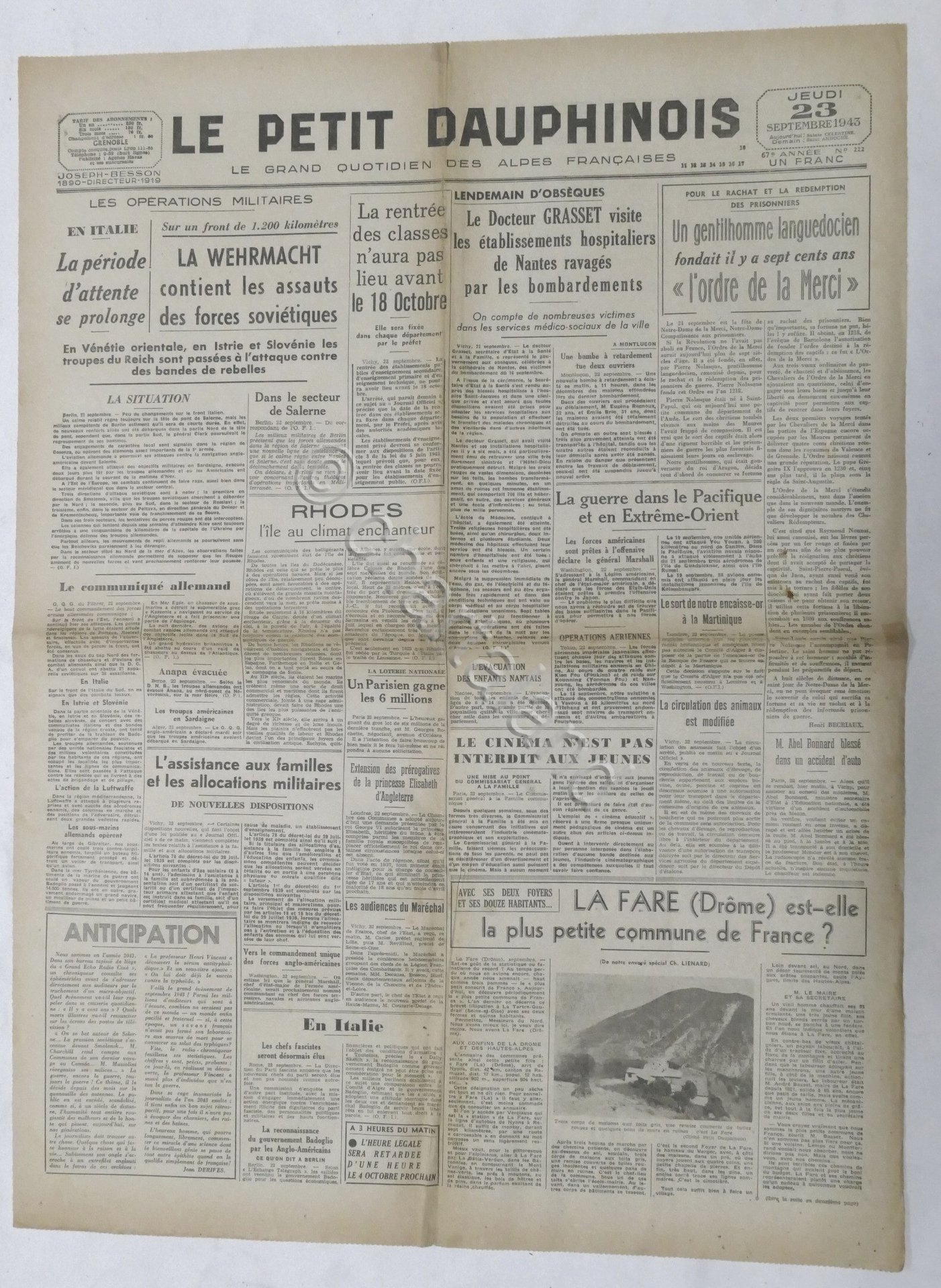 WWII Giornale - Le Petit Dauphinois N. 222 - 1943 Quotidien des Alpes Francaises | Libri antichi e moderni |