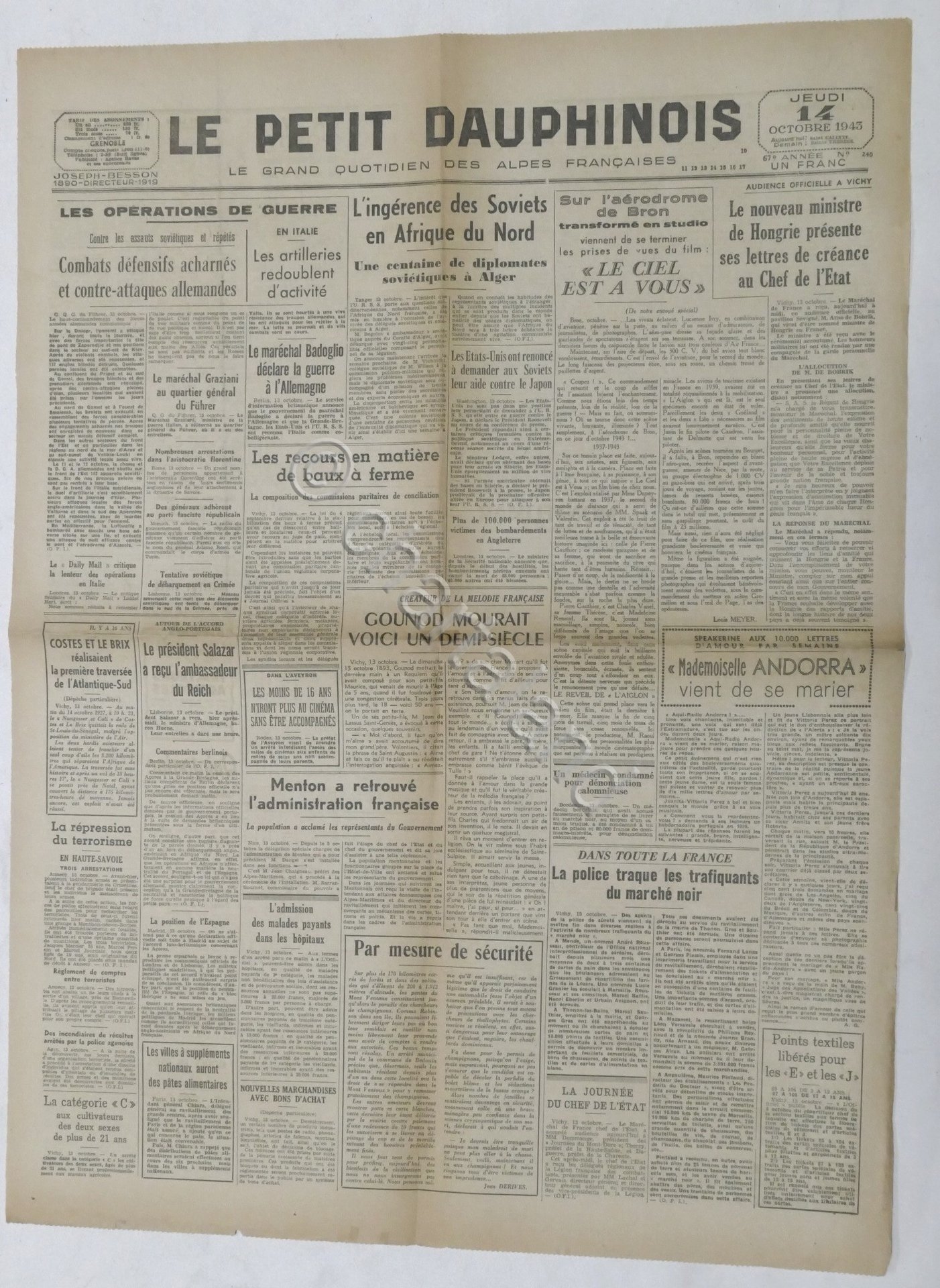 WWII Giornale - Le Petit Dauphinois N. 240 - 1943 Quotidien des Alpes Francaises