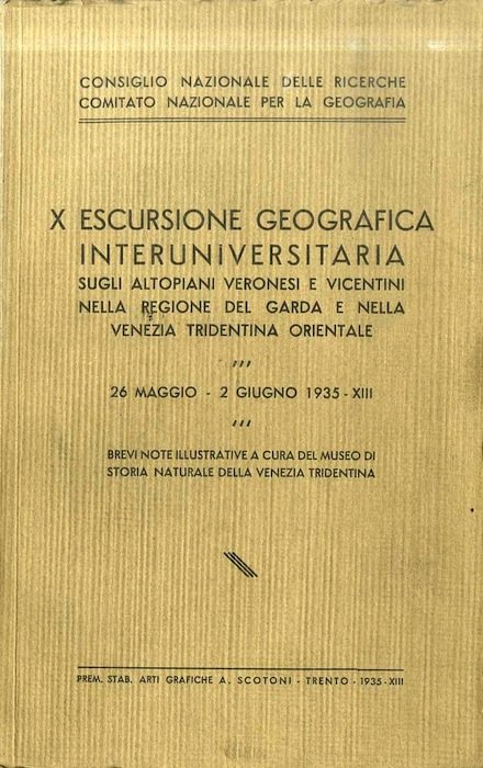 X escursione geografica interuniversitaria sugli altopiani veronesi e vicentini, nella regione del Garda e nella Venezia Tridentina orientale: 26 maggio-2 giugno 1935: brevi note illustrative. | Libri antichi e moderni |