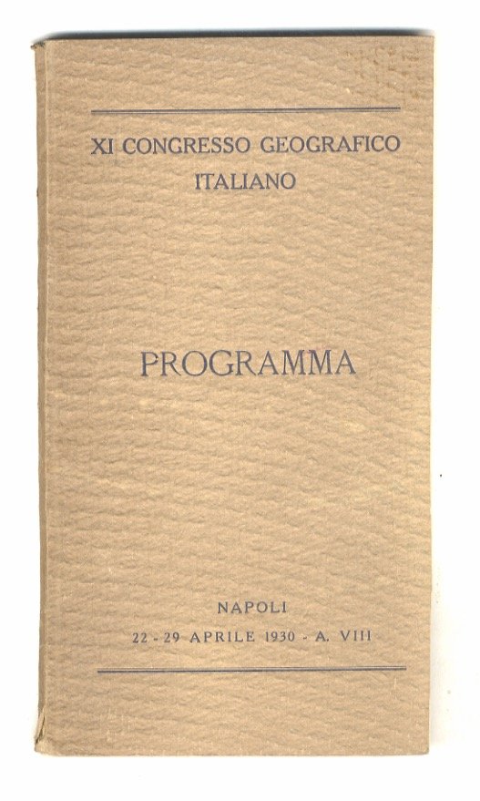 XI Congresso Geografico Italiano.Programma. Napoli 22-29 aprile 1930. | Libri antichi e moderni |