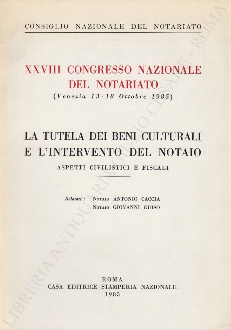XXVIII Congresso Nazionale del Notariato (Venezia 13-18 Ottobre 1985). La tutela dei Beni Culturali e l'intervento del notaio. Aspetti civilistici e fiscali | Libri antichi e moderni | Caccia Antonio - Guiso Giovanni