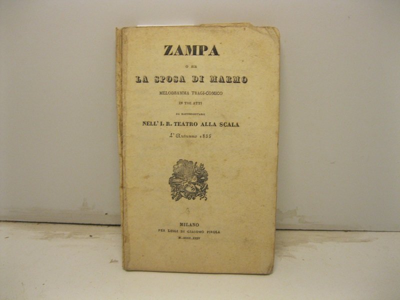 Zampa o sia la sposa di marmo. Melodramma tragi - comico in tre atti da rappresentarsi nell'I. R. Teatro alla scala l'autunno 1835 | Libri antichi e moderni | Herold Ferdinand