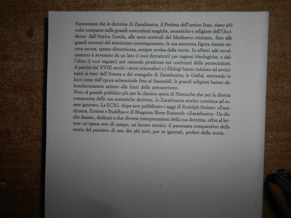 PAUL DU BREUIL. Genova, ECIG, 1990. ZARATHUSTRA (Zoroastro) e la trasfigurazione del mondo. In-8°, br. 489 pp. Come nuovo. Neg. esot. mob. 51
