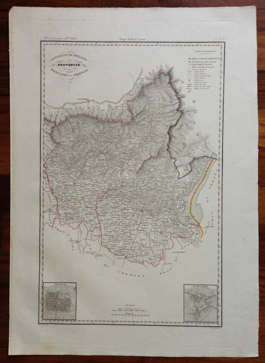 Zuccagni Orlandini Acquaforte Originale 1840 Atlante Geografico Bergamo Brescia | Libri antichi e moderni |