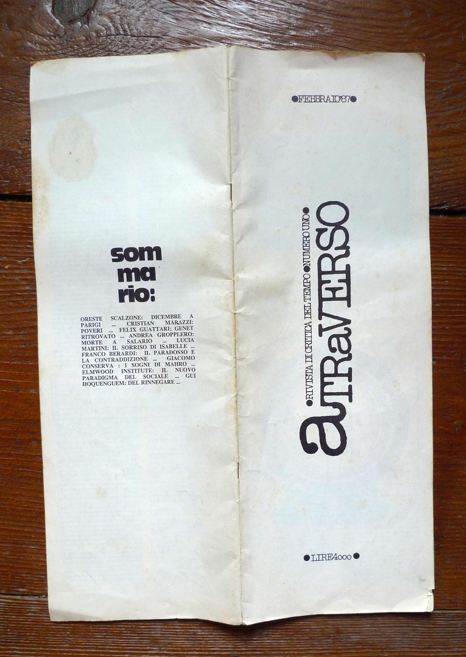 aTRAVERSO 1 Feb.1987.RIVISTA DI CRITICA DEL TEMPO[Bologna,Bifo,Scalzone,Guattari