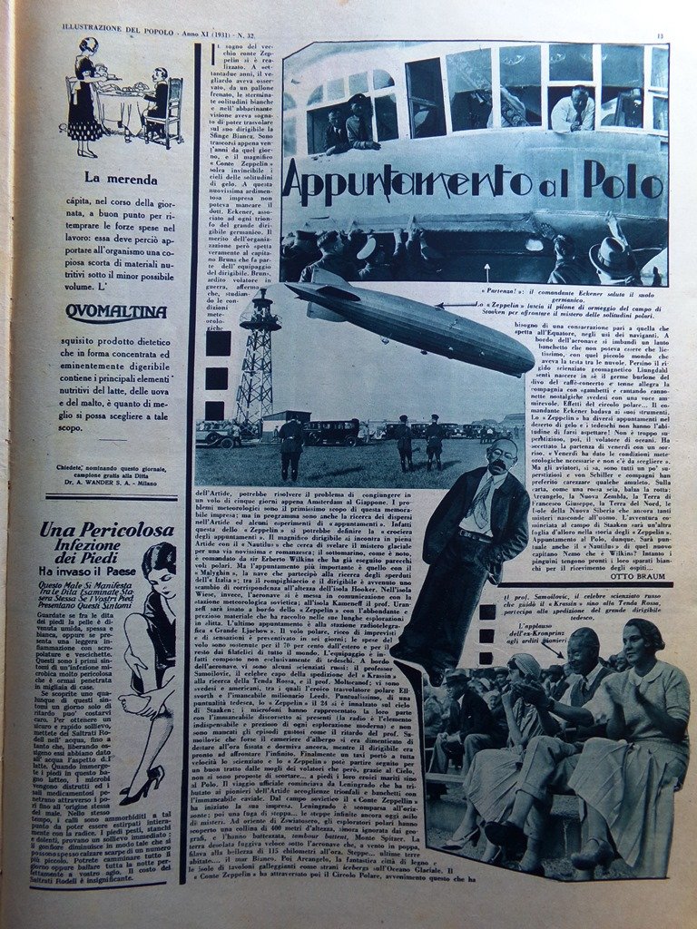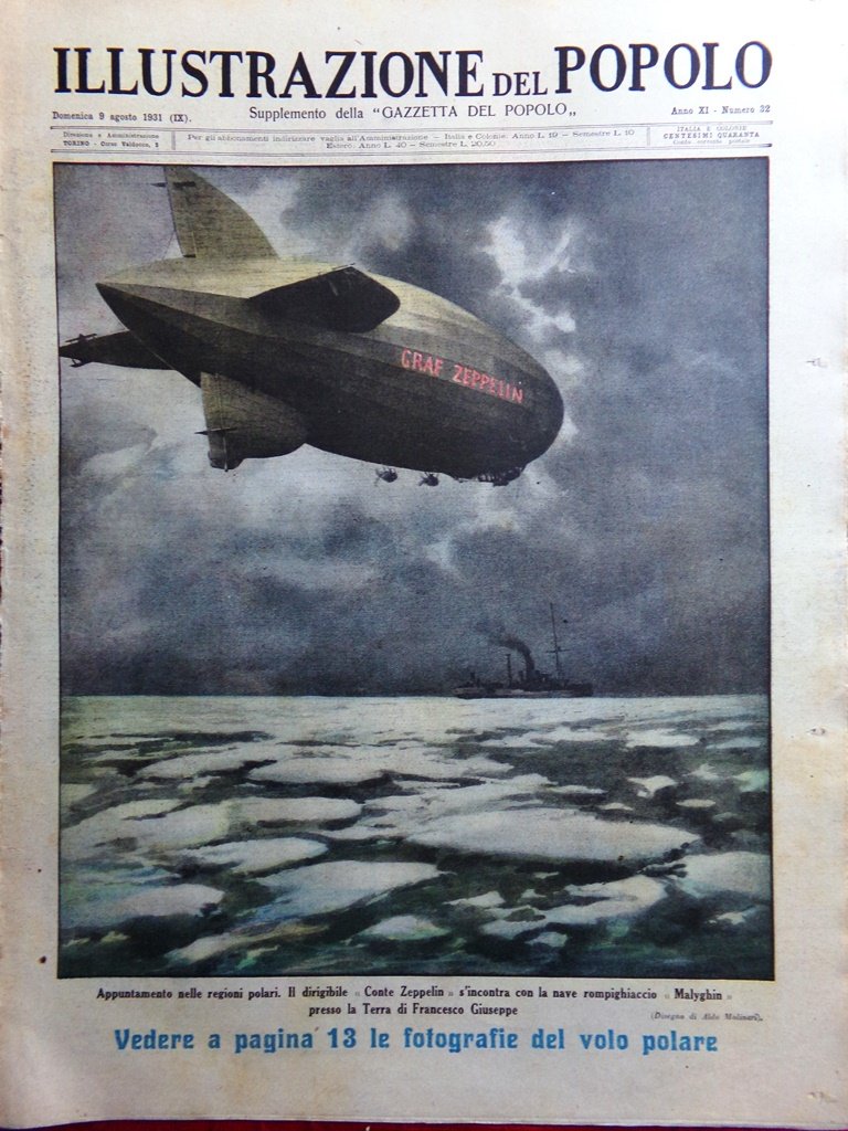 Illustrazione del Popolo 9 Agosto 1931 Grock Zeppelin Polo Malyghin Lambertini
