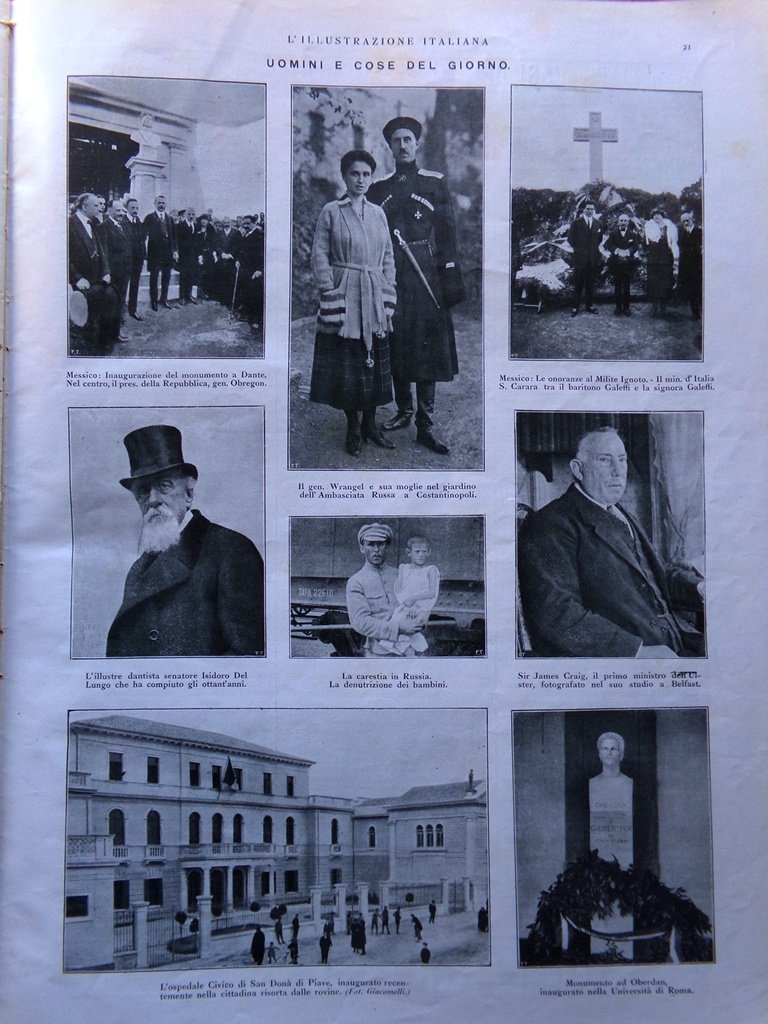 Uomini e cose del giorno: Isidoro Del Lungo, l'ospedale civico di San Donà di Piave, la carestia in Russia
