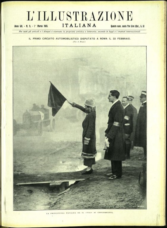 In-4, brossura, mancante delle pagine pubblicitarie ma in buono stato. In questo numero:Il primo circuito automobilistico disputato a Roma il 22 febbraio.