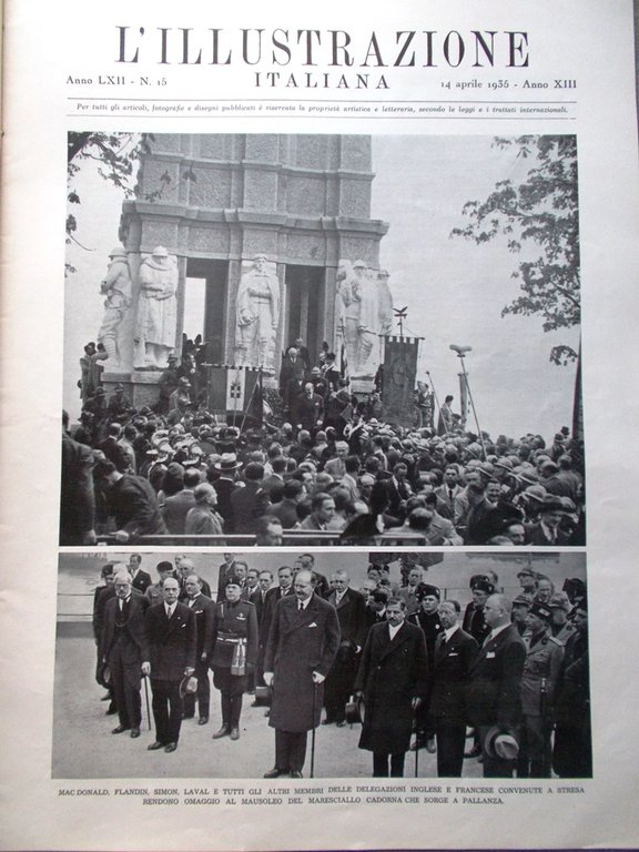 L'Illustrazione Italiana 14 Aprile 1935 Convegno di Stresa Pirandello Mark Twain | Periodici |