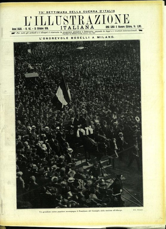 In-4, brossura. In buono stato di conservazione. In questo numero:L'onorevole Boselli a Milano.
