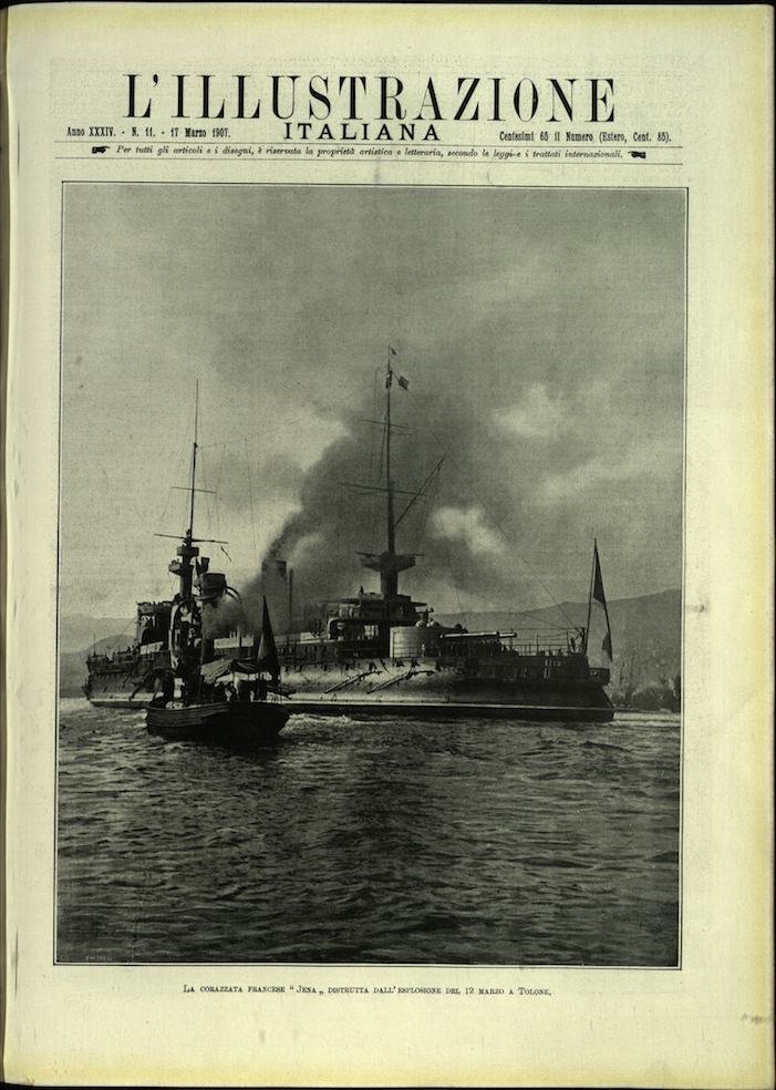 In-4, brossura. In buono stato di conservazione. In questo numero:La corazzata francese Jena' distrutta dall'esplosione del 12 marzo a Tolone.