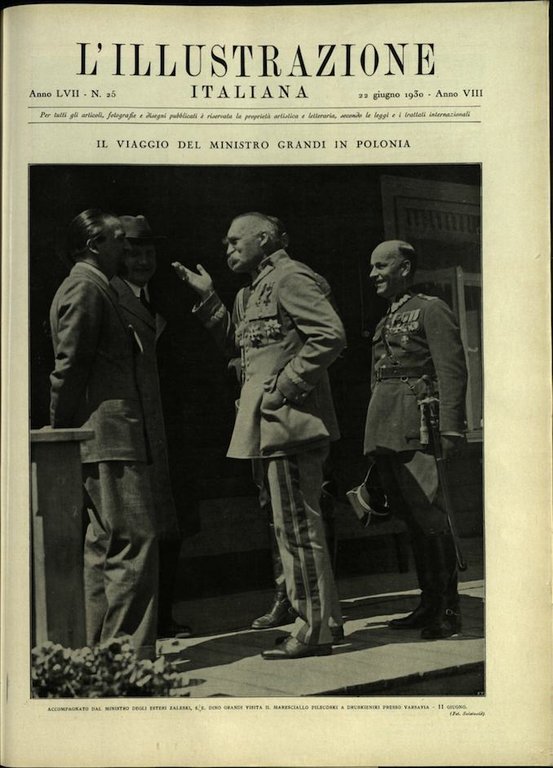 In-4, brossura. In buono stato di conservazione. In questo numero:Il viaggio del ministro Grandi in Polonia.