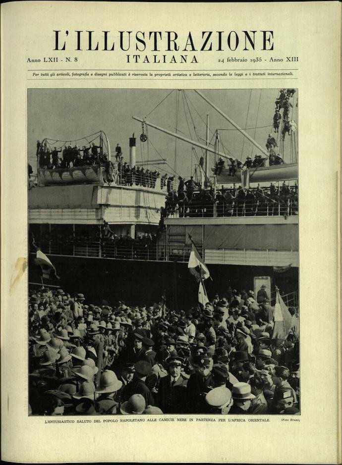 In-4, brossura. In buono stato di conservazione. In questo numero:L'imbarco delle camicie nere per l'Africa orientale.
