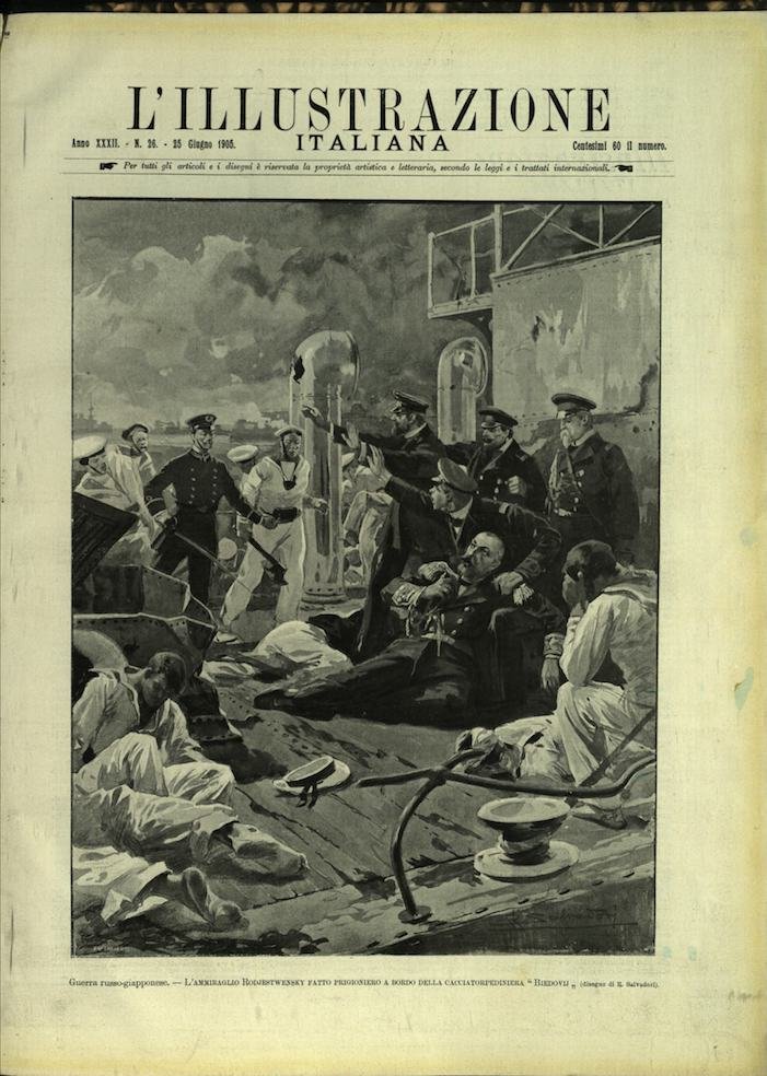 In-4, brossura. In buono stato di conservazione. In questo numero:Guerra russo-giapponese - L'ammiraglio Rodjestvensky fatto prigioniero a bordo della cacciatorpediniera Biedovij'.